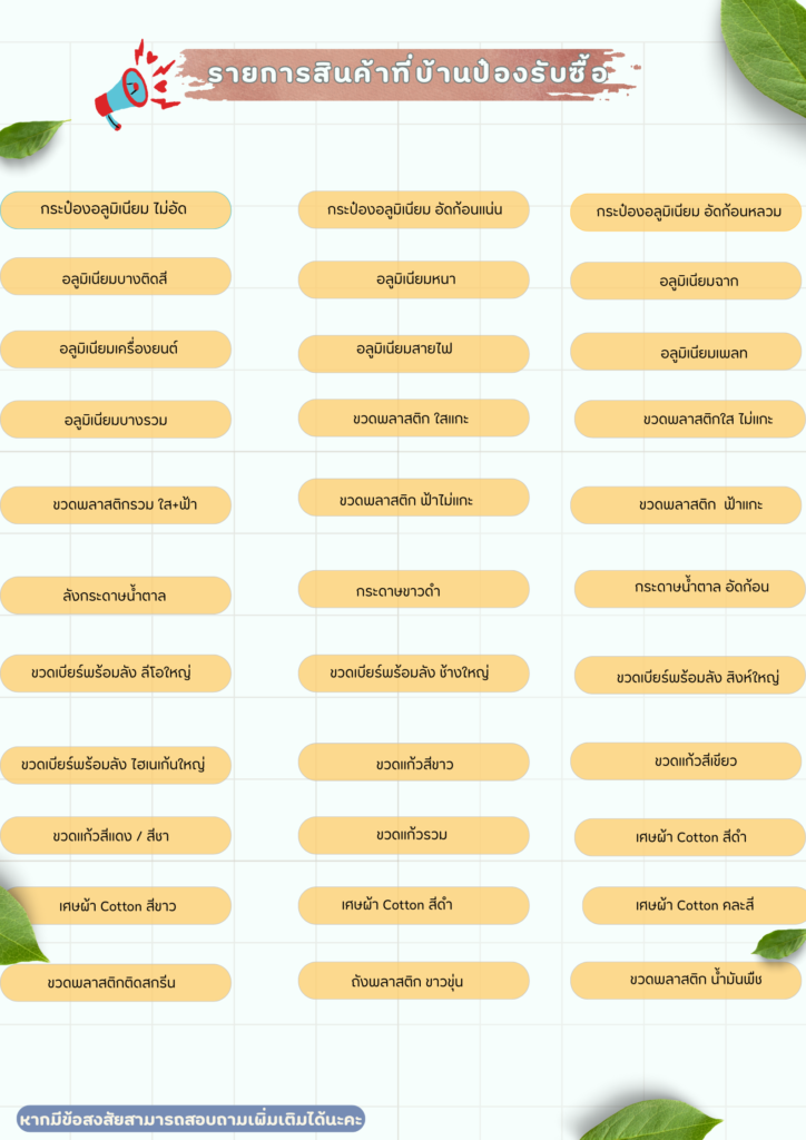 ตารางรับซื้อสินค้า